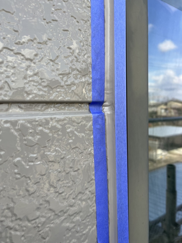 金属サイディングの場合、縦にコーキングは走っていませんが、窓廻りと入れ隅にコーキングは走っています。このコーキングをないがしろにしてしまうと、外壁の内側から水が回ってしまい、厄介な錆の原因につながるので、全て打ち増しで施工しました。