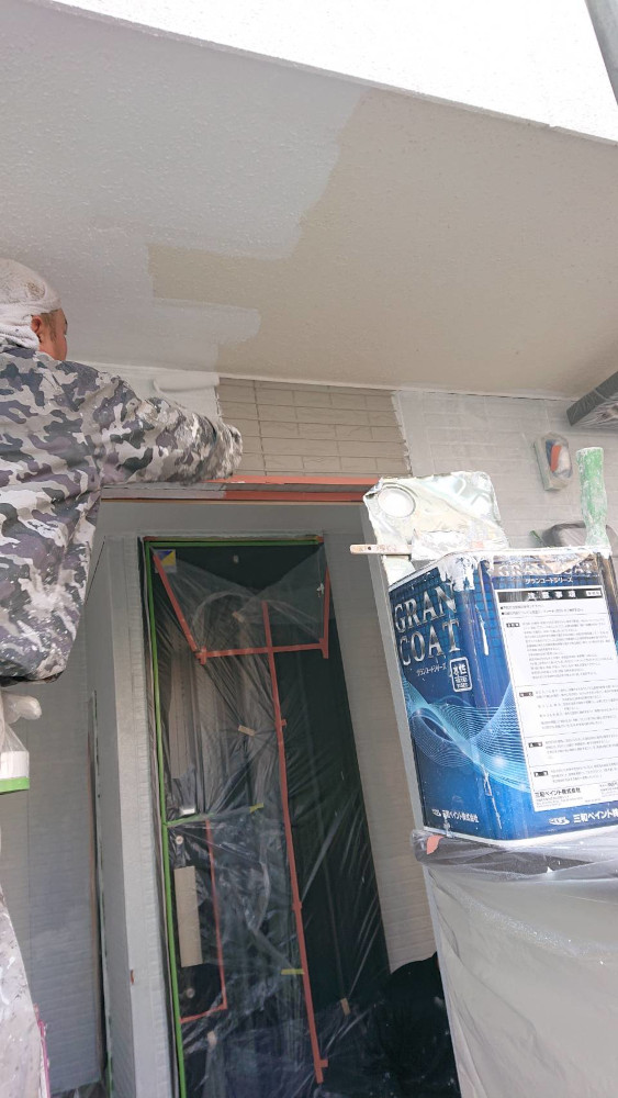 何箇所かある、ひび割れ箇所をコーキング補修し、下塗りにエポキシ系を使い、選んで頂いたハイブリッドの塗料を中塗り、上塗りと仕上げました。