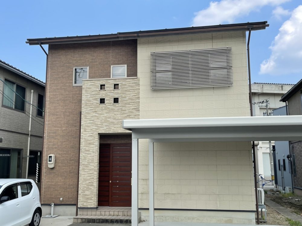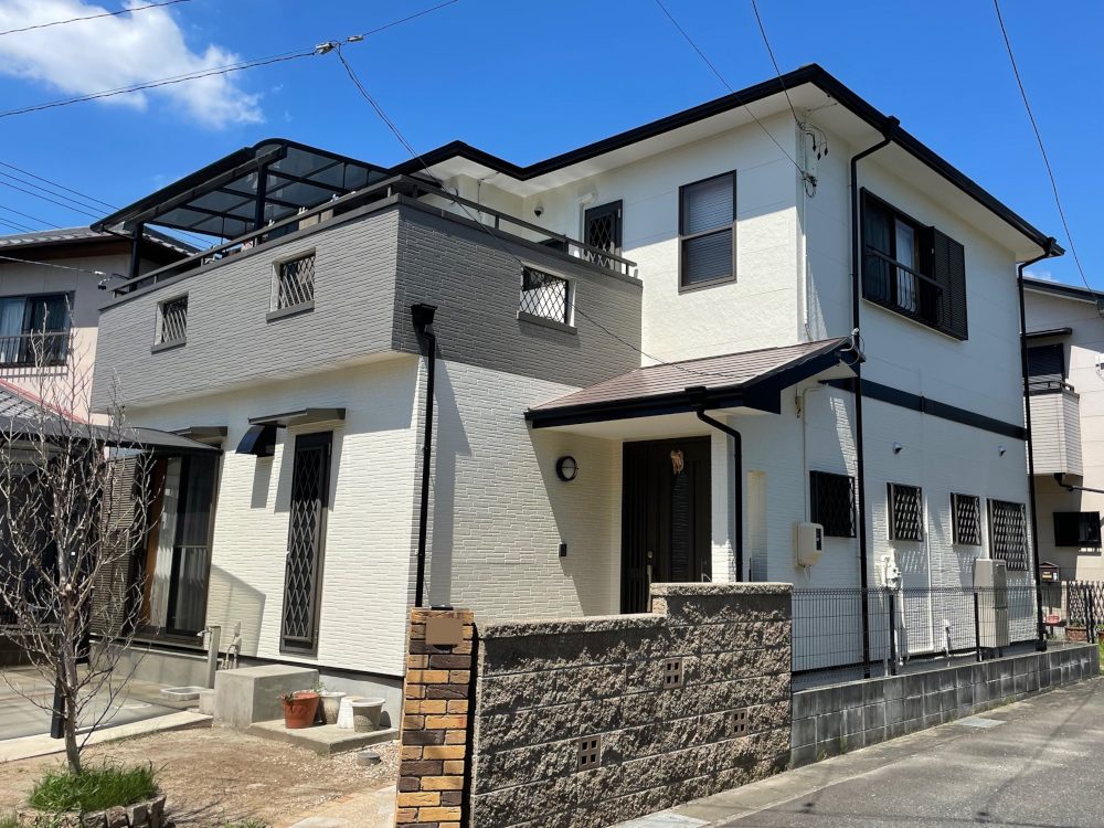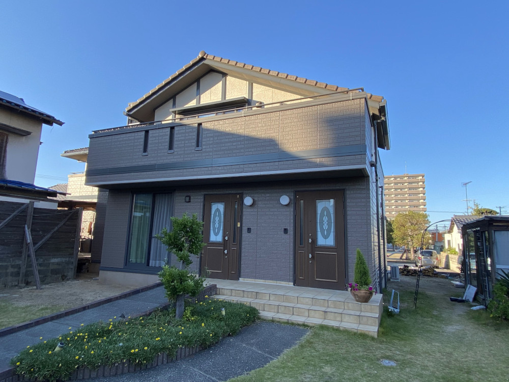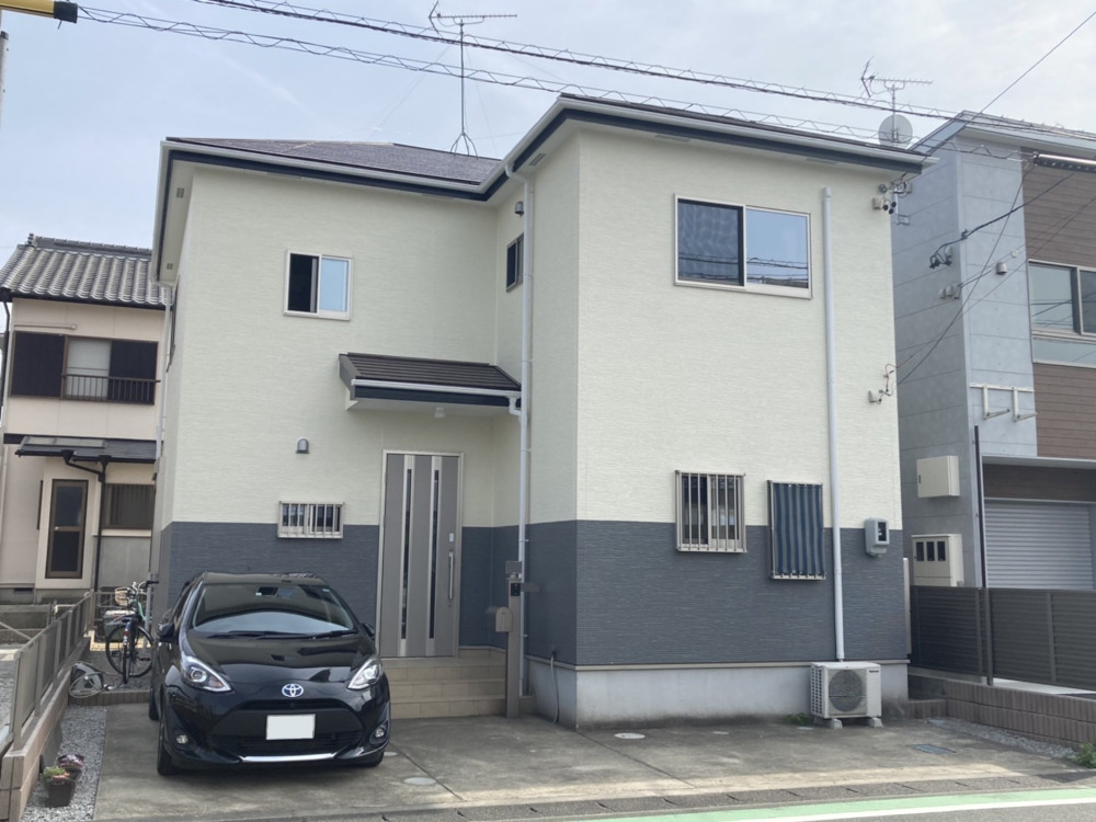 元々お客様のお家の外壁が3色の色を使われていましたので、3色使用しつつイメージを変えてたいとのご要望を頂きましたので、実際に外壁に色板を合わせてお客様と打合せをしながら色を決めていきました。