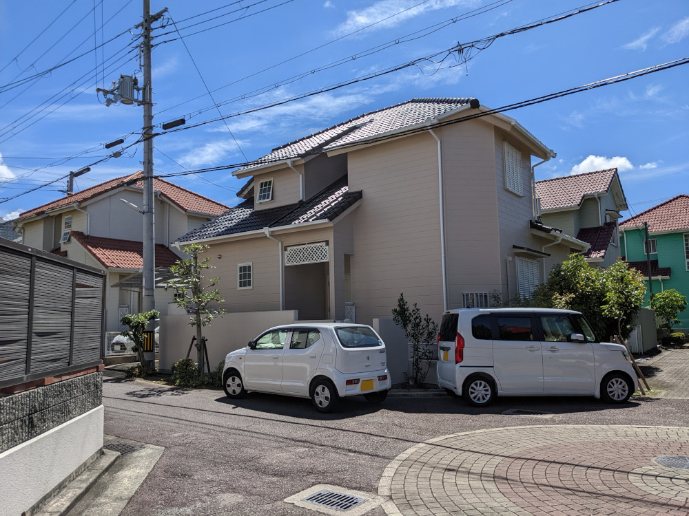 モニエル瓦を塗装する際に表面のスラリー層(着色スラリーという着色剤を塗ってできた層)をきれいに取り除く必要があります。(塗装後の塗膜の剥がれの原因となる為)他の屋根瓦の洗浄の時以上に、丁寧に仕上がりも確認しながら洗浄しました。