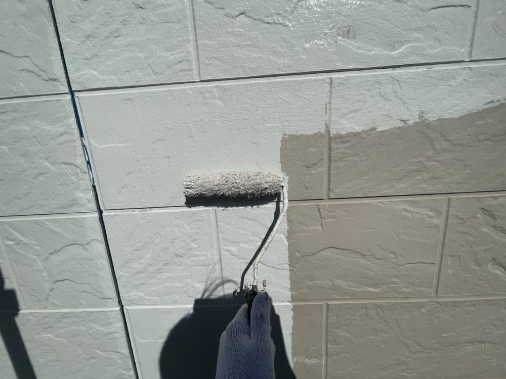 外壁塗装の下塗りです。私共の下塗りでは下地の再生強化ができるという点、防水性能が付いているという点が強みです。