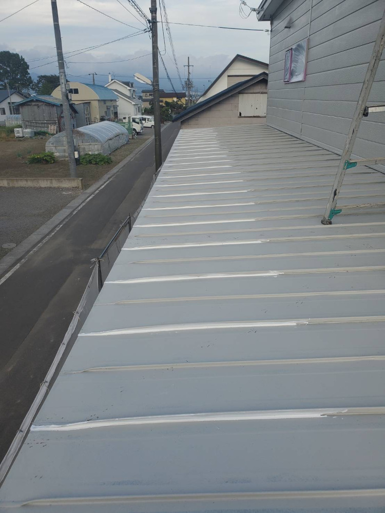 屋根は一度塗装されていたが、前回から年数がたっており経年劣化していた為、今後傷みが出ない様に強い錆止め材を使って施工しました。