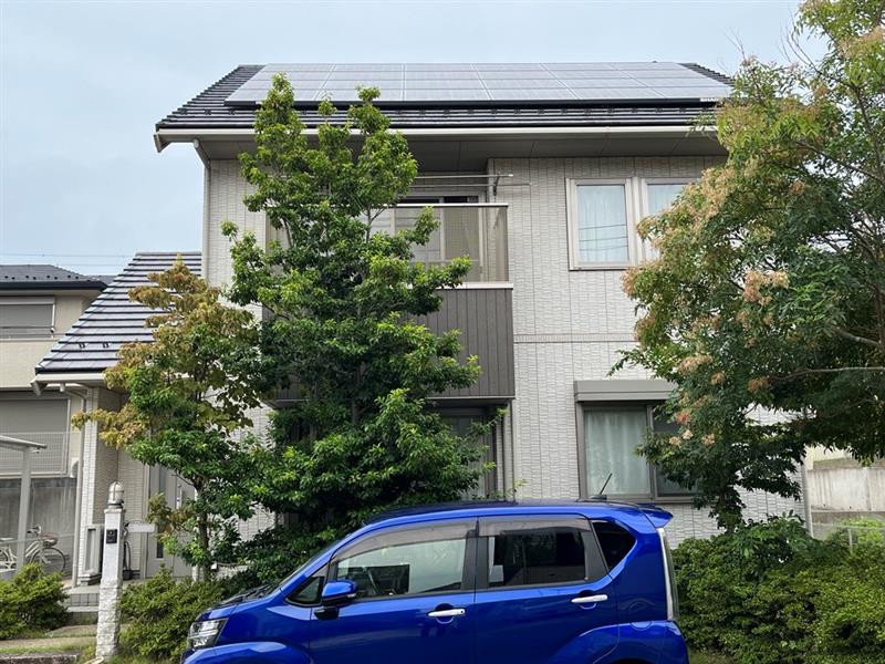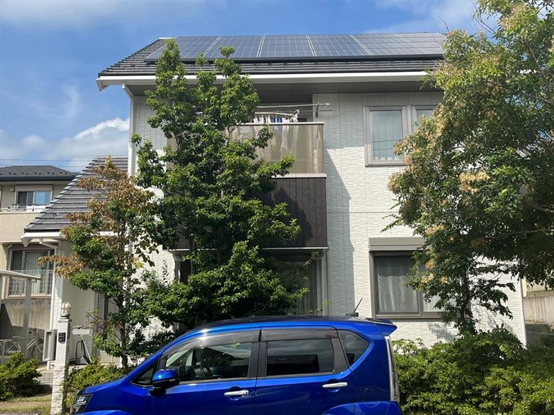 凹凸がある外壁の為塗り残しがないよう確認しながら塗装しました。