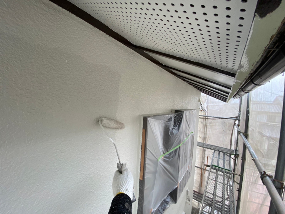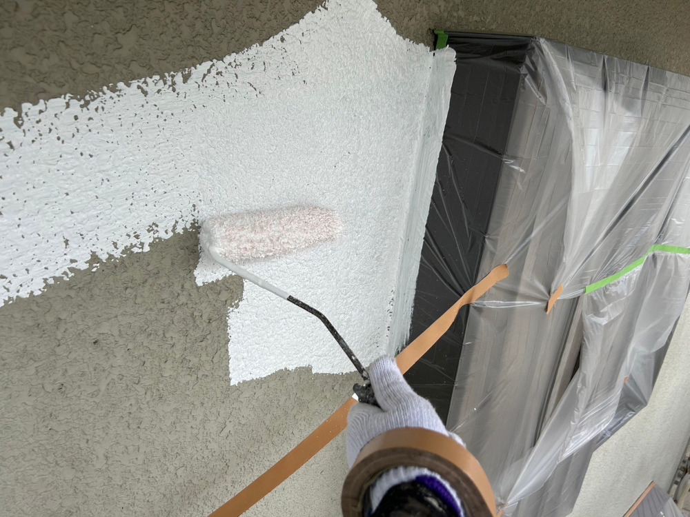 築が古い物件なので、大変な手塗りの作業でしたが、下塗り・中塗りと精一杯丁寧に行っていたので、最終の上塗り作業で手は抜けないので、隅々までしっかりと塗りました。