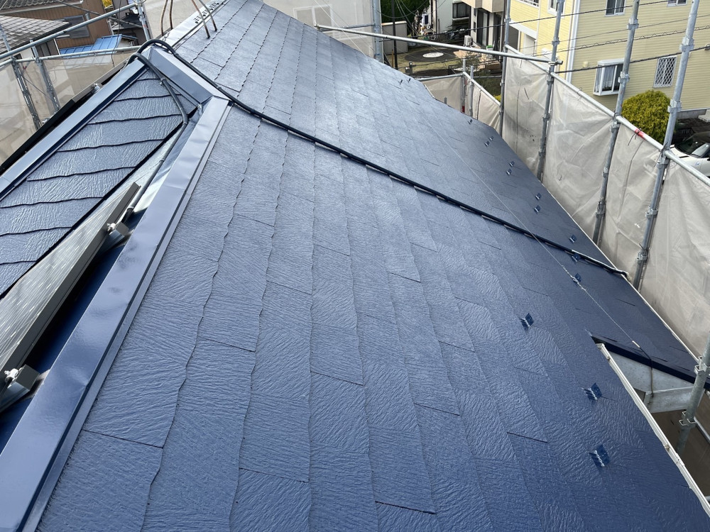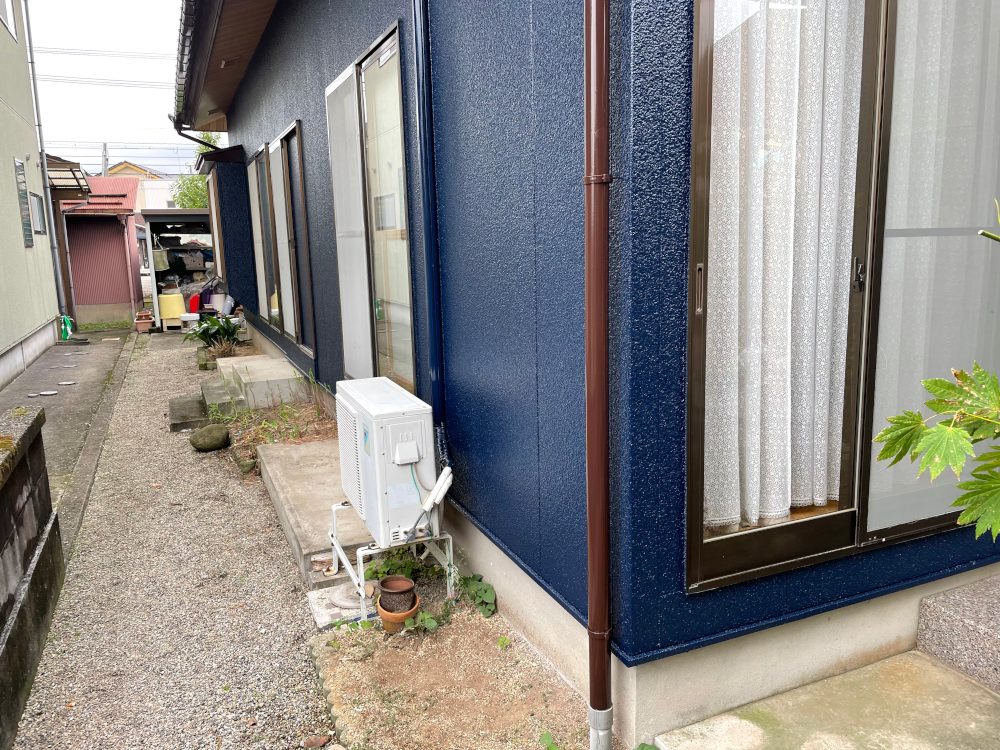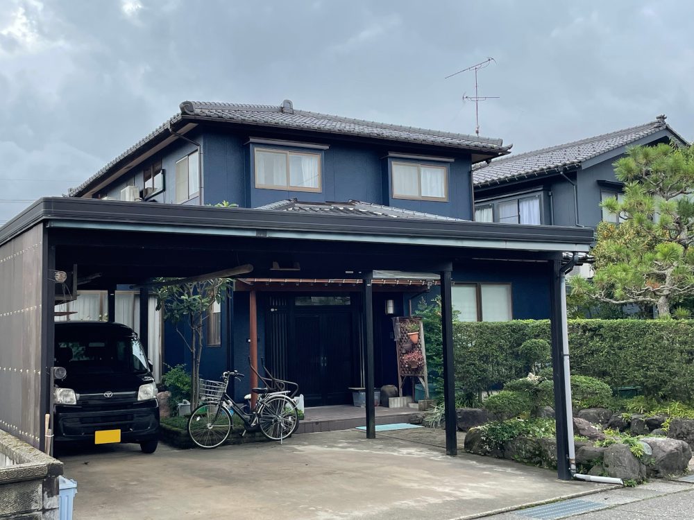 外壁の色が紺色なので、外壁と釣り合いのとれた塗装と傷まない様にする為
