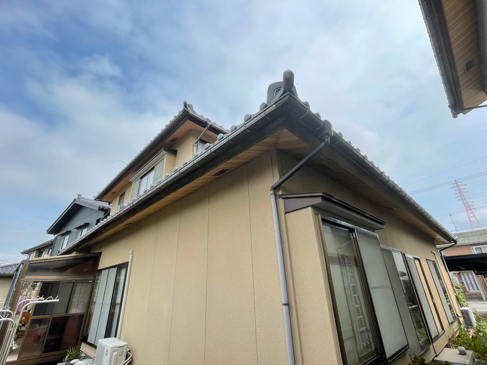 今回の色は中塗り後、吸い込み具合で色ムラがでたので、施工PTさんに3回塗りして頂きました。施主様が気にされてる所は、声がけしながら中塗り、上塗りの作業しました。2階の水切りみは、錆止めの塗料を使用し塗装したので、施主様も満足して頂けました。