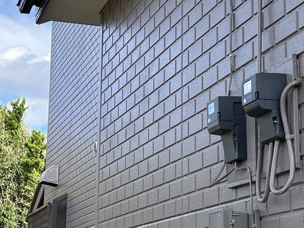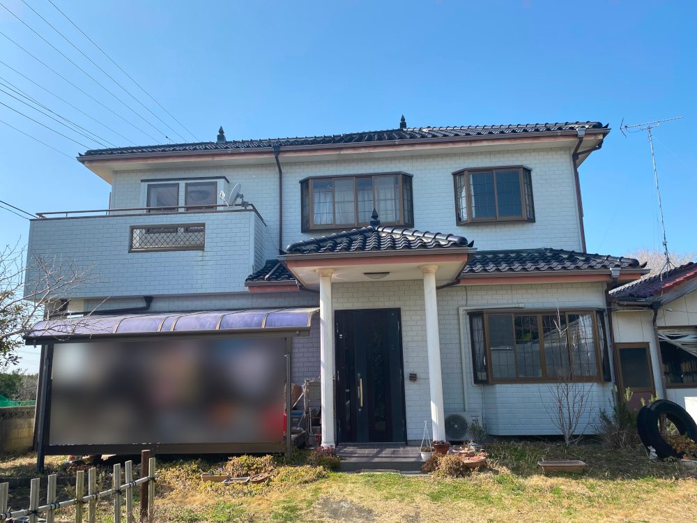 外壁塗装の上塗りです。屋根は塗らずだった為、現状色のまま屋根に合う色でご提案させて頂きました。