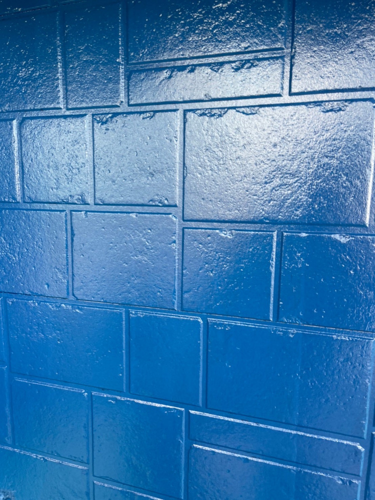 今回はグランコートシリーズの新色であるSP-475色を用いての施工でした。SP-475のように濃厚な色は、油断すると下地の色が透けてしまうこともあるため、何度もダブルチェックを行いました。