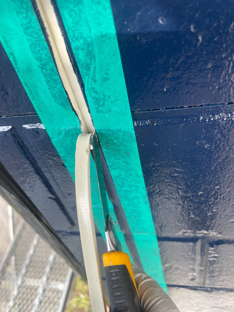 ひび割れや痩せが目立っていた旧コーキングを撤去し、新しく打ち直しました。コーキングは防水面で非常に大きな役割を果たす部分なので丁寧に線出しや均しを行いました。