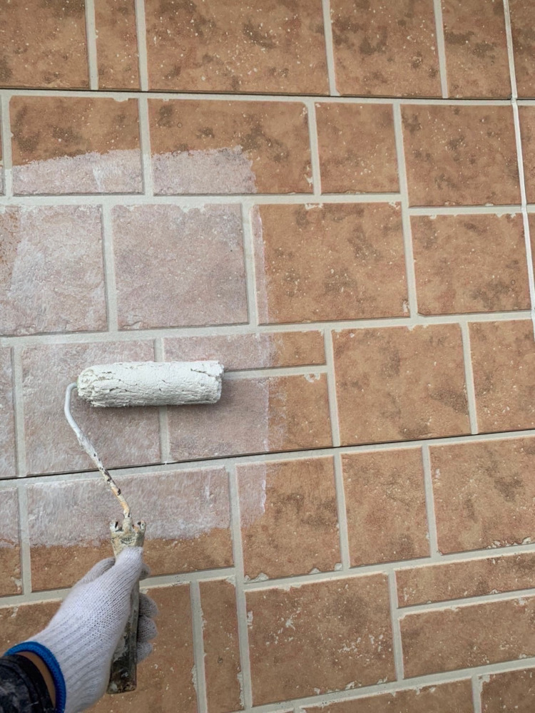 細かい亀裂や色あせ等、年数なりのお傷みが見受けられたので、建材にしっかり浸透するように念入りに作業を行いました。この下塗をしっかり入れることで中塗り・上塗りの効果を性能通り発揮することが出来ます。