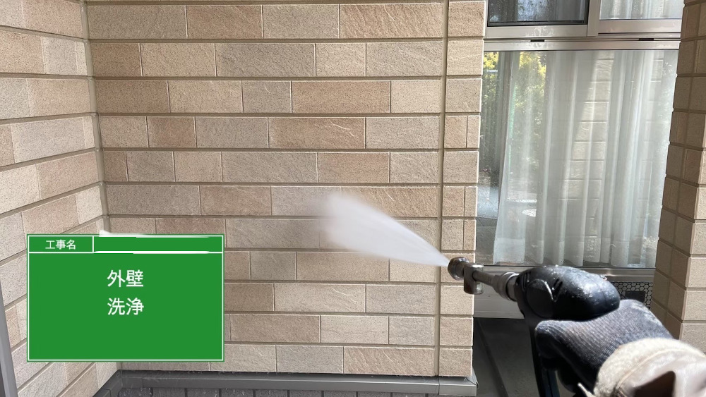 塗装工事をする前に外壁に付着した汚れを落とす事で塗装の仕上がりを良くします。