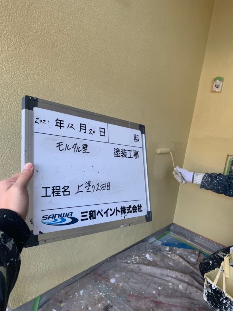 基本的に外壁も屋根も3回塗っていきますが、最後の上塗り作業は中塗り後の塗装でムラを無くすために行います。