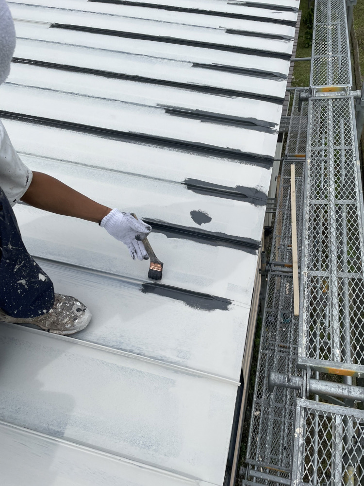 屋根も複数箇所でサビが出ており、全体的にも色あせしてチョーキングの傷みが出ていたため