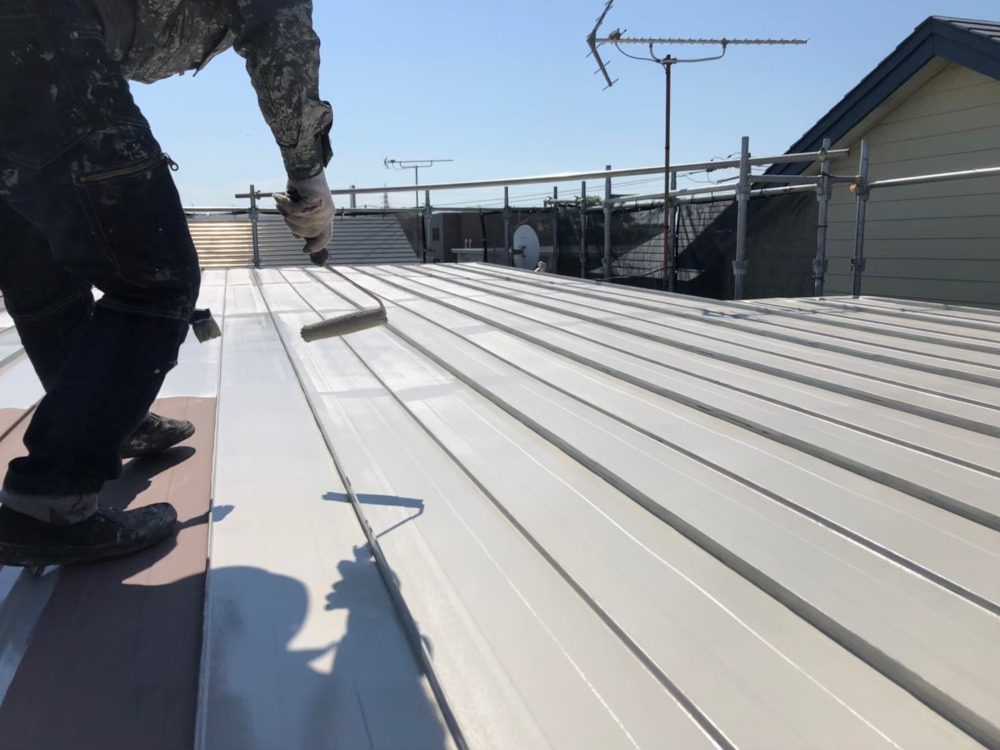海が近いため屋根にチラホラ錆が出ていたのでケレン掛けを入念に行い特に下塗りは時間かけて丁寧な作業を心掛けるように職人に指示しました。