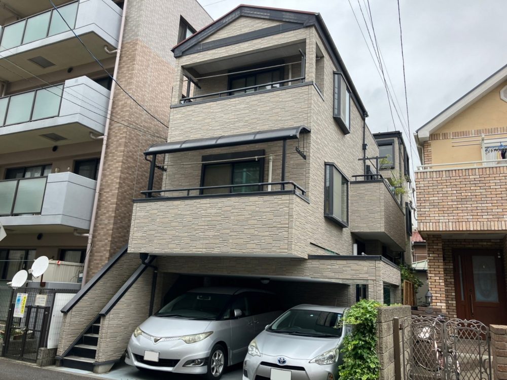 養生テープでラインを綺麗に仕上がるようにし、プライマーをしっかりと塗布して外壁が2色なので色合いを確認しながら施工しました。