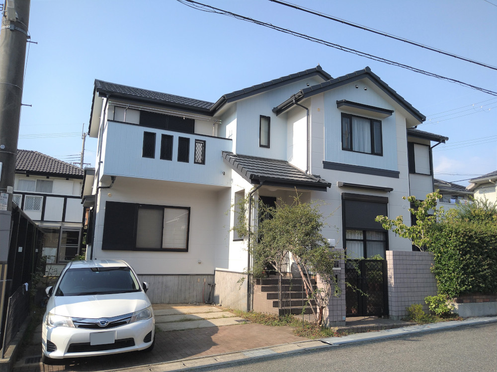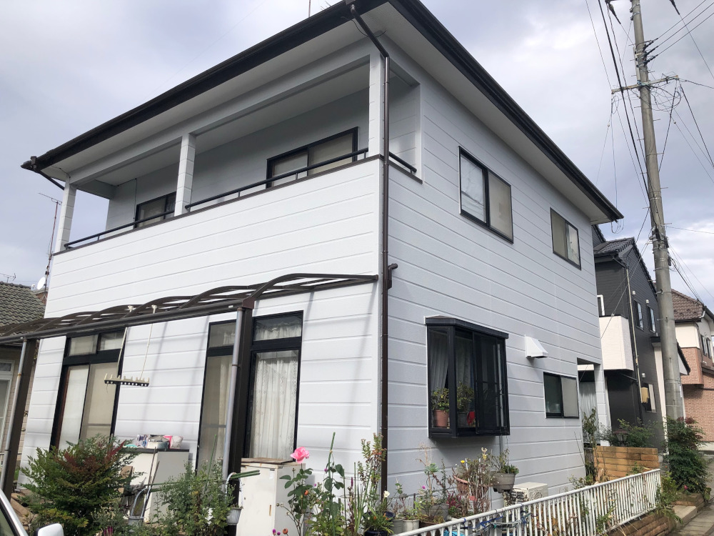 お電話にて案内すると、お父様の代で一度塗装をされているが10年以上経過し、色あせやチョーキングを気にされておりました。塗料の質や定期点検のアフターサービスに信用頂き、お任せいただくことになりました。