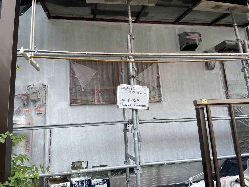 なんといっても、三和ペイントの1番のこだわりは、関西ペイントの長くお家を守ってくれる下塗り剤です。再生強化し、中塗り、上塗りが壁にしっかりとふっつくようにしています。職人さんの手塗りがさらに壁との密着をよくしてくれています。