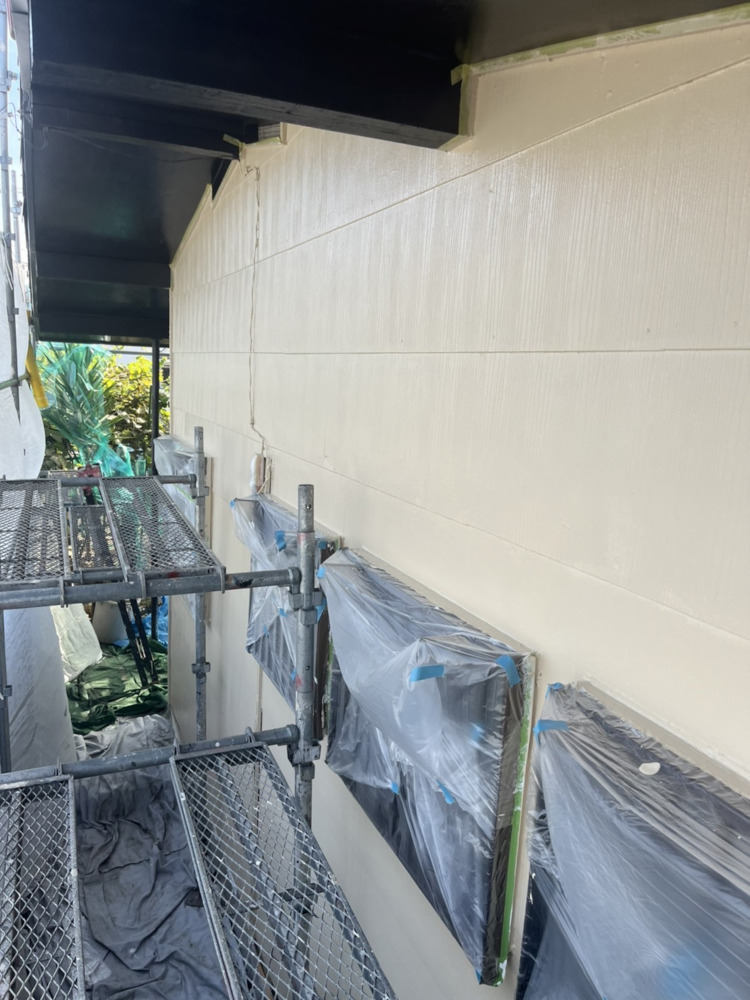 築年数がかなり経っているのでムラが発生しやすいため、丁寧に施工して行きました。色の仕上がりで満足してもらえるように丁寧に行いました。