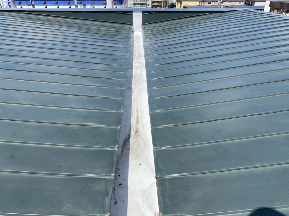 屋根板金の傷みも進んでいたため、ケレン後の下塗りも重要な作業です。特にハゼ等の板金のつなぎ目など、細かな部分をより入念に作業を行いました。