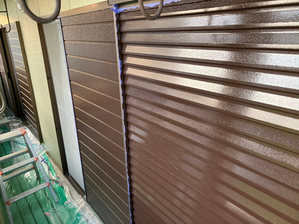 前回の雨戸塗装の表面が少し剥がれてる箇所がある為、全体をケレンし、面をある程度たいらにした状態にしました。その後、木部の色に合わせた雰囲気がと施主様の希望もありましたので、全体がまとまるようにまとめました。