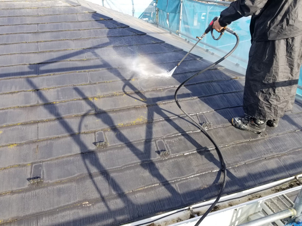 洗浄で汚れを丁寧に落として、塗装を進められるように高圧洗浄を行いました。