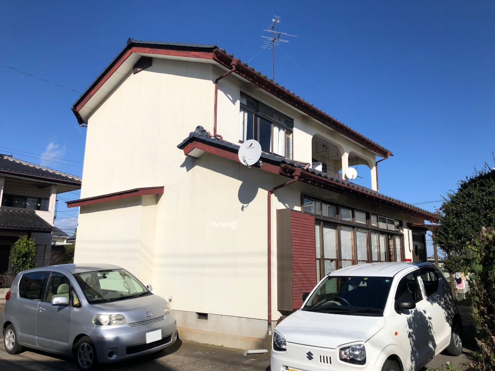 外壁の上塗り工程です。塗りムラや塗り残しがないように確認しながら進めます。