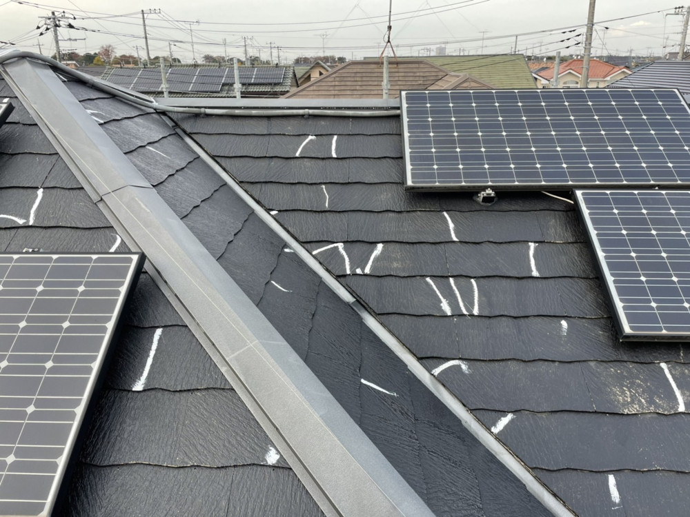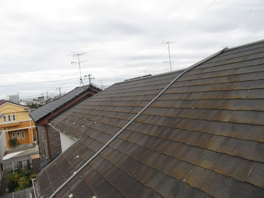 初めての塗装で、屋根の経年劣化が進んでおり、下塗りで施工した時も、塗料の染み込みが多い状態でした。