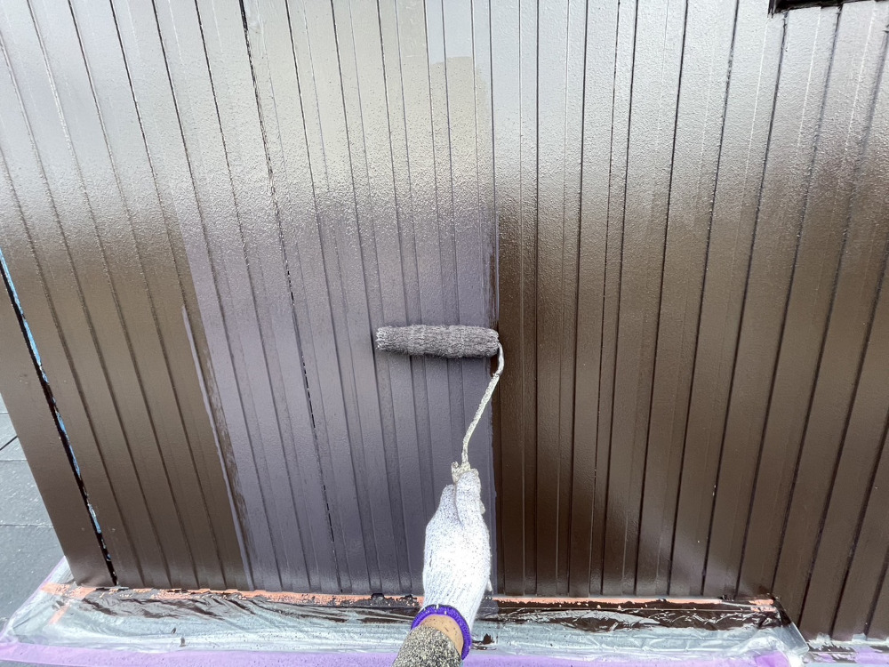 外壁の1番見栄えが決定する大切な工程のため、上塗りは1番丁寧に、綺麗に施行させて頂きました。膜厚が最終的に決定するのが上塗りなので、ここの工程をピックアップさせていただきます。