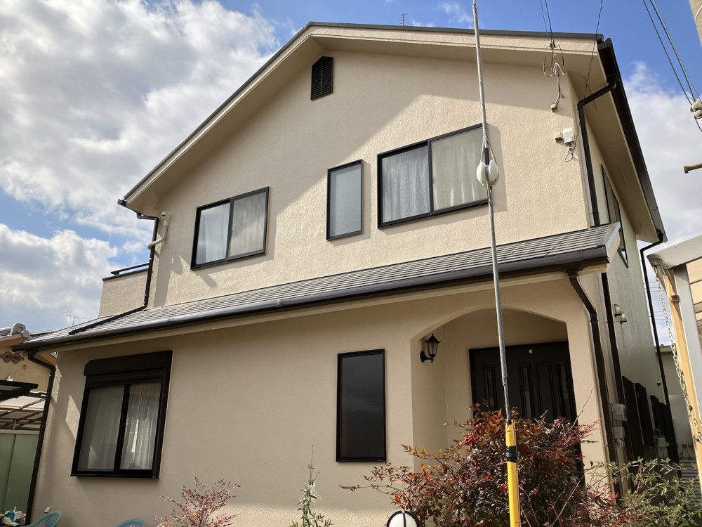京都市木津川市/洋風戸建ての外壁塗り替え(ベージュ系)・屋根塗り替え(ネオブラック)