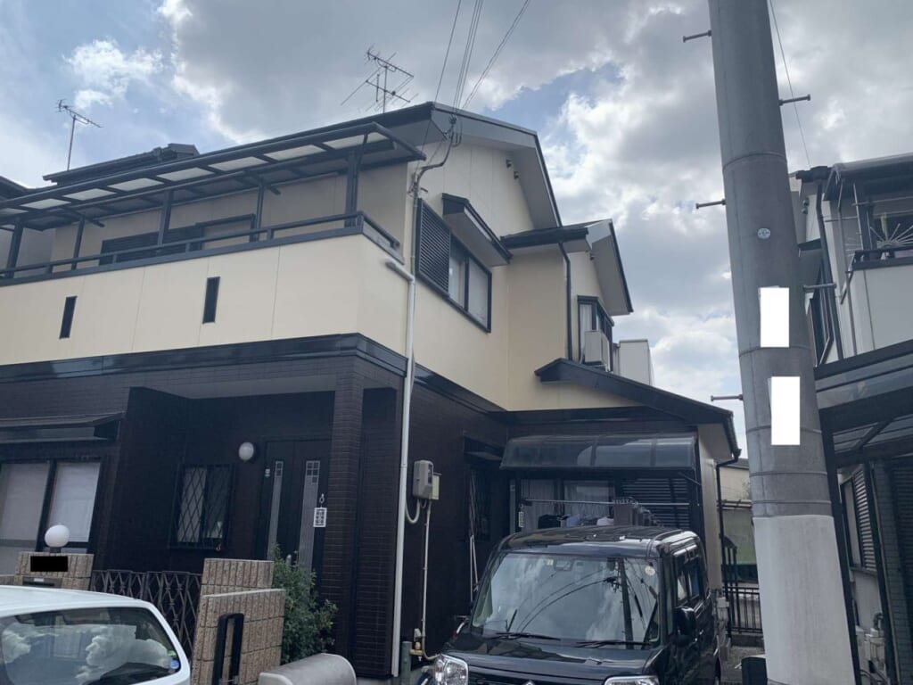 大阪府門真市/洋風戸建ての外壁塗り替え(ベージュ ラジカル系)屋根塗り替え(ブラウン シリコン系)