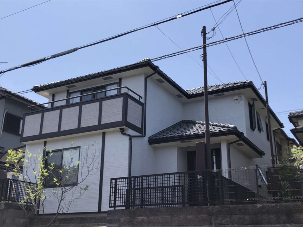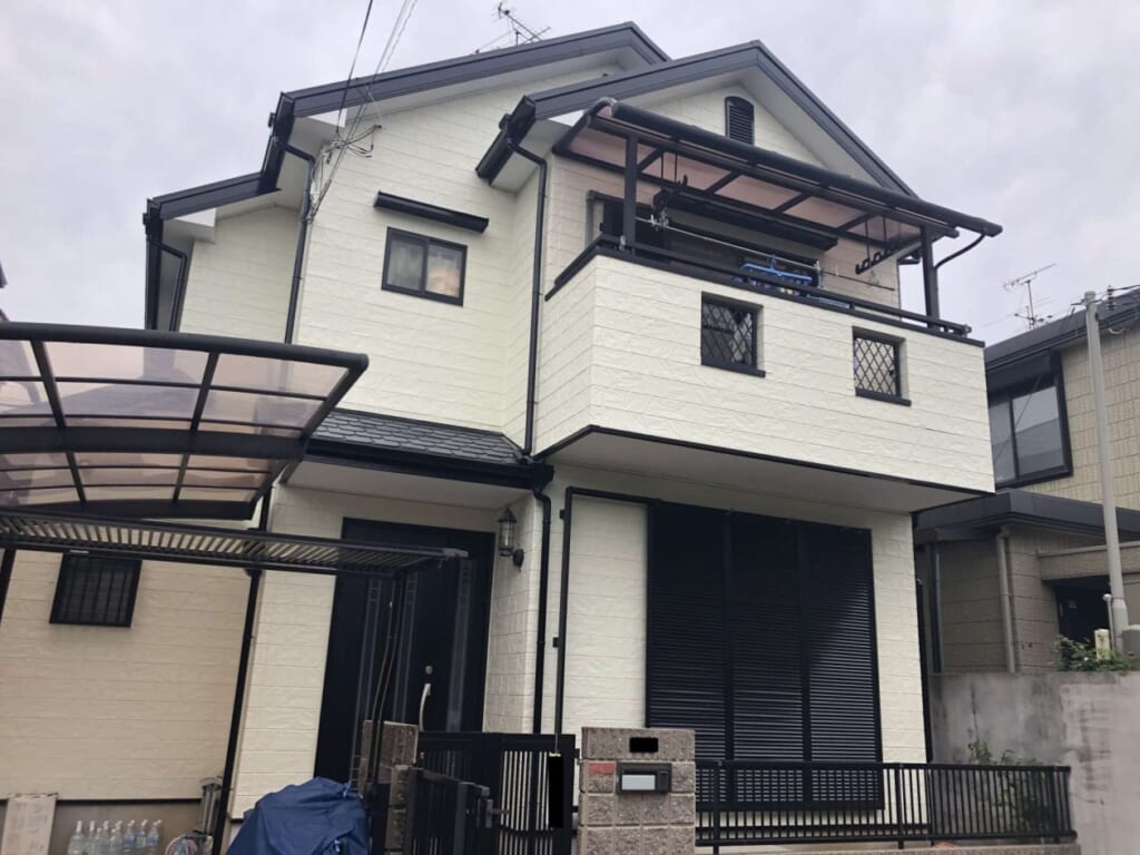 滋賀県大津市/和モダン風戸建ての外壁塗り替え(ホワイト ゾラコート系)・屋根塗り替え(グレー シリコン系)