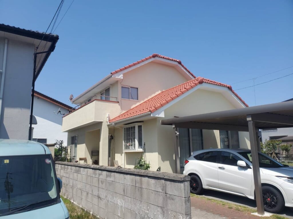 鳥取県米子市/洋風戸建ての外壁塗り替え(ベージュ ラジカル系)・屋根塗り替え(オレンジ フッソ系)