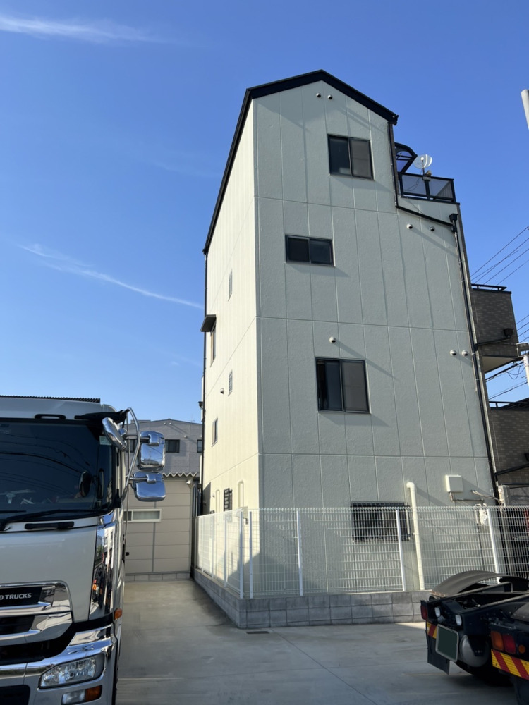 大阪府柏原市/洋風戸建ての外壁塗り替え(グレー系)・屋根塗り替え(ネオブラック)