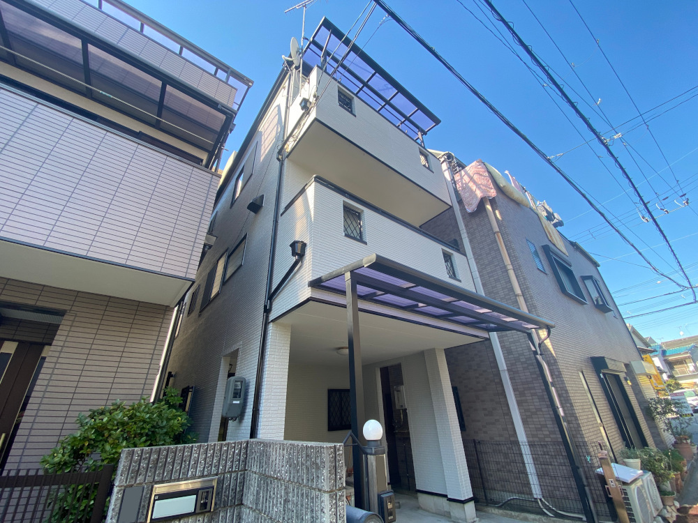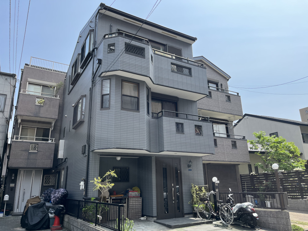 大阪府門真市/洋風戸建ての外壁塗り替え(グレー系)・屋根塗り替え(ネオブラック)