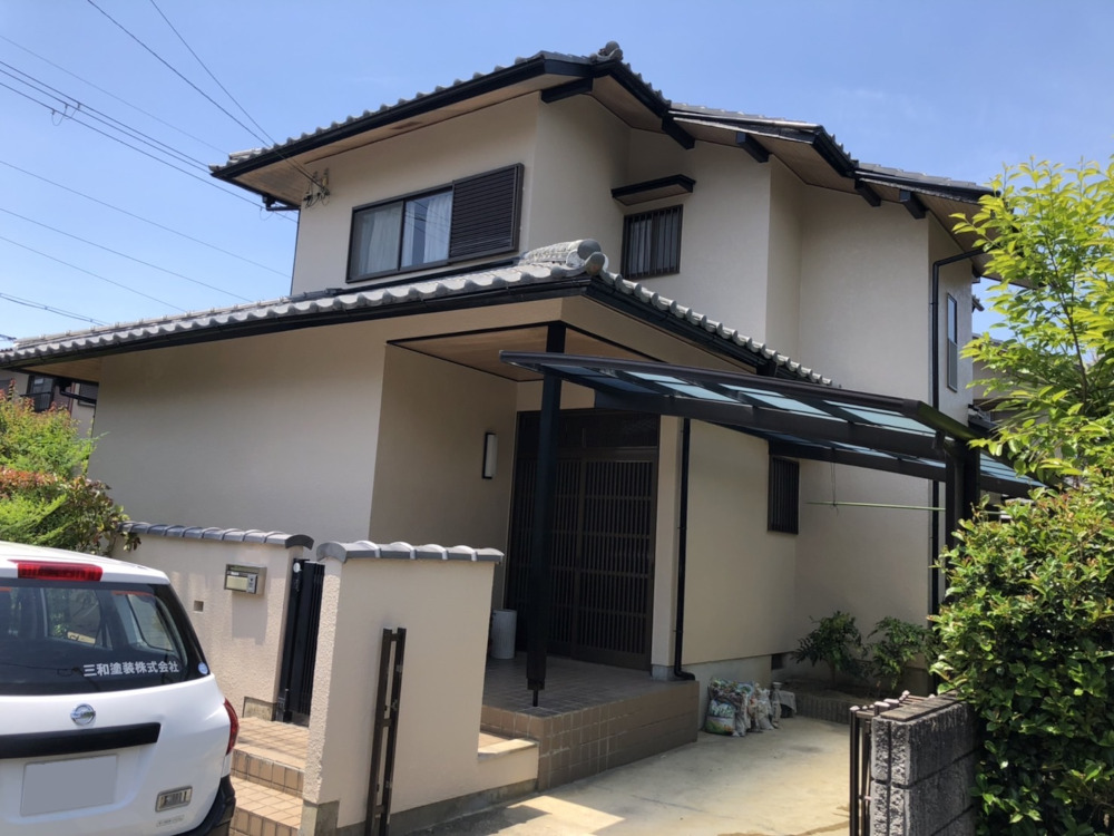 奈良県生駒市/洋風戸建ての外壁塗り替え(ベージュ系)・屋根塗り替え(カーボングレー)