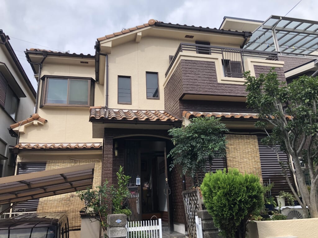 大阪府池田市/洋風戸建ての外壁塗り替え(ベージュ・ブラウン・シリコン系)・屋根塗り替え(ブラウン・シリコン系)