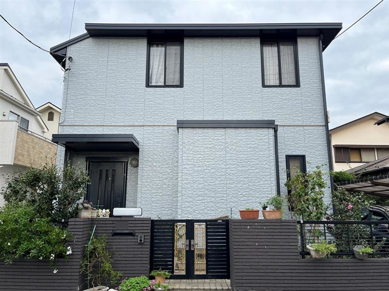 千葉県八千代市/洋風戸建ての外壁塗り替え(グレー系)・屋根塗り替え(カーボングレー)