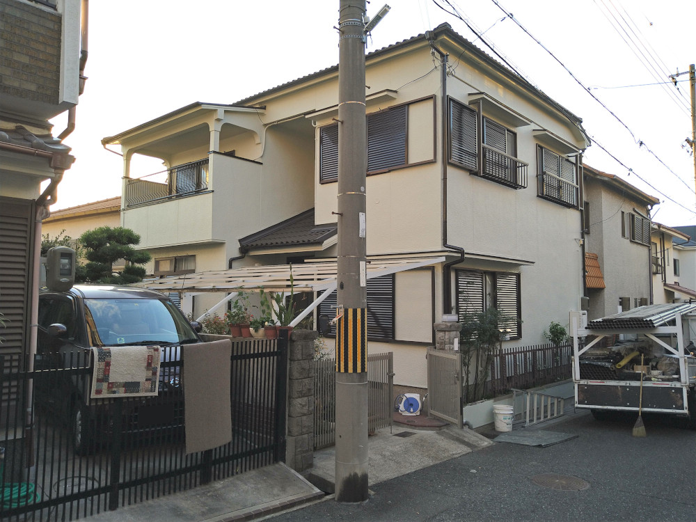 兵庫県宝塚市/洋風戸建ての外壁塗り替え(ベージュ系)・屋根塗り替え(アンバーブラウン)