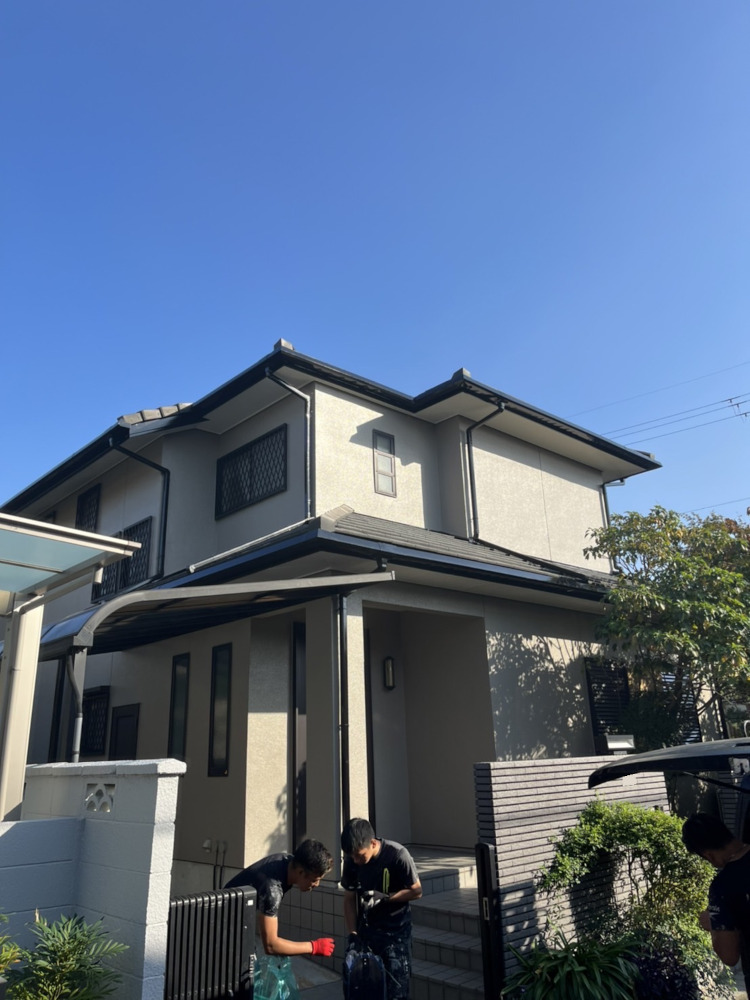 静岡県浜松市/洋風戸建の外壁塗装・屋根塗装 ベージュ系とグレー系でアクセントが綺麗なお家に